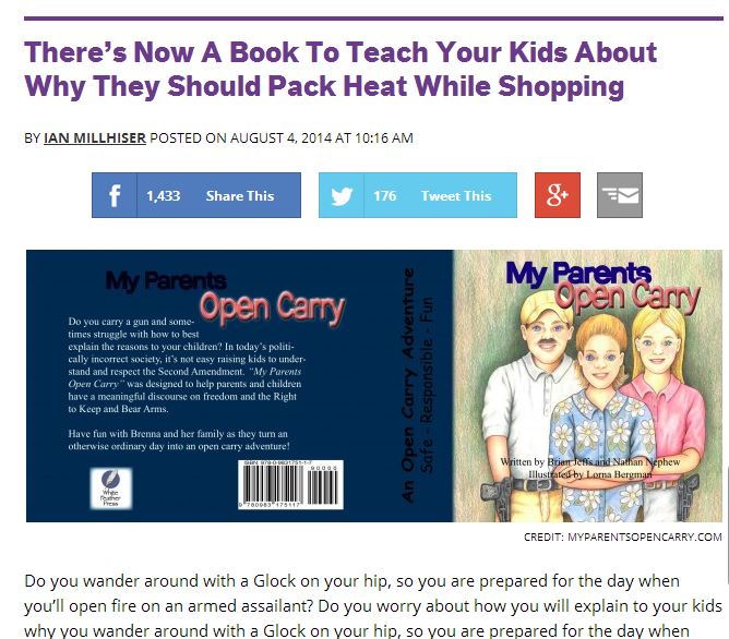So the book is for kids to understand why their parents Open Carry, but neitherTHINKnorProgress chooses to make it look as if we were teaching kids to Open Carry by their lonesome.