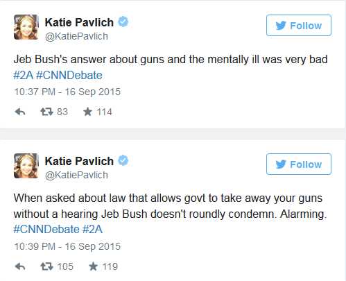 Former Florida Governor Jeb Bush may have hurt his credibility with gun owners during the 3+ hour Republican Debate last night. Katie Pavlich of Townhall noticed it immediately.