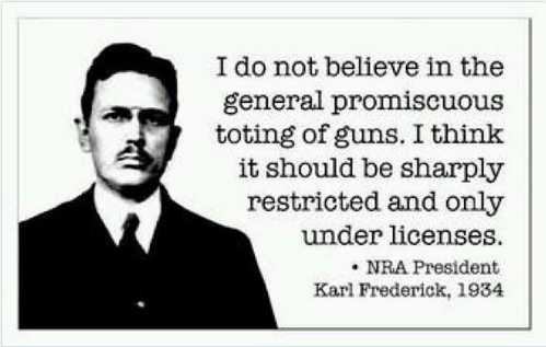 In the wake of Wednesday's on-camera shooting in Virginia, Evan Dickson posted the above meme on Twitter, in which a past National Rifle Association president says the "promiscuous toting" of guns should be "sharply restricted." The quote is accurate, and Frederick wasn't alone — for much of the 20th century, the NRA's leaders sympathized with and even supported gun control measures.